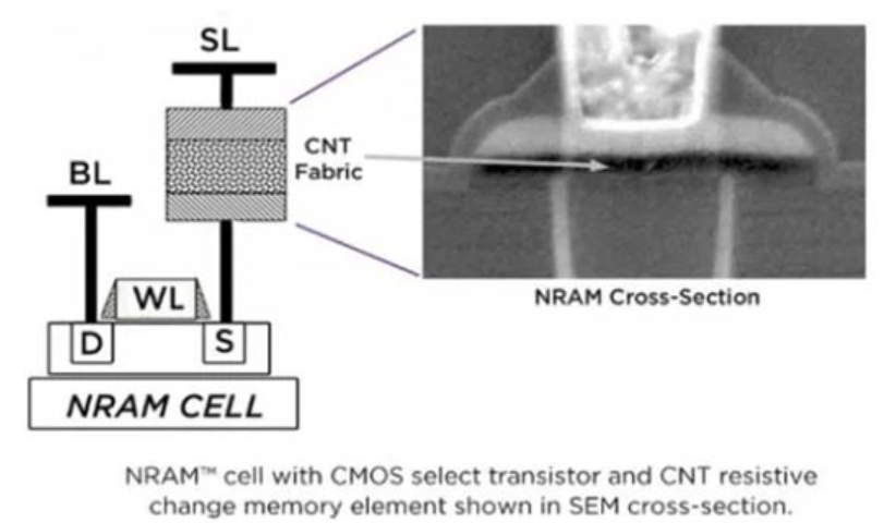 對比別的存儲器,納米碳管運行內存(NRAM)是一個近些年出現的新東西,它具備眾多優點:可以DRAM的速度提供非易失性,具有超越DRAM的可擴展性和對閃存的超強耐久性的潛力。它比基本上全部新起存儲系統(PCM,