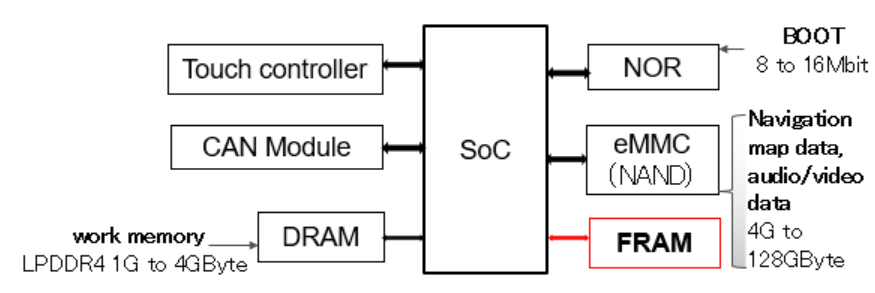 環境傳感器&攝像,車聯網通信技術和人工智能決策平臺是自動駕駛技術的核心技術。傳感器,CAN通信,infotainment這些系統需要實時和持續地存儲當前狀態信息,并進行實時分析和處理。因此需要提高存儲器的性能和耐久性設計,這些要求使FRAM成為理想的存儲選擇。