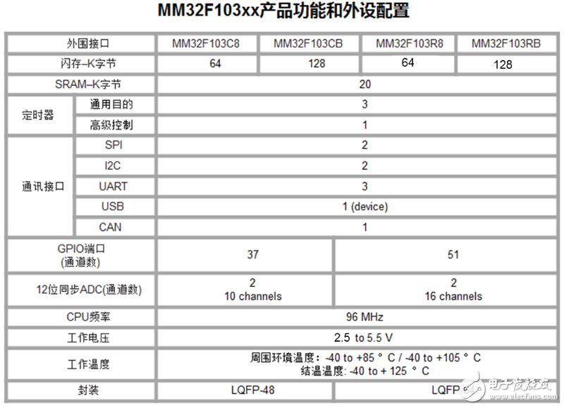 靈動微MM32F103使用高性能的ARM-M3 32位的RISC內核,最高工作頻率為96MHz,內置高速存儲器,豐富的增強I/O端口和連接到兩條APB總線的外設,所有型號的器件都包含2個12位ADC,2個12位的DAC,2個電壓比較器,三個通用16位定時器和一個PWM高級定時器,還包括標準和先進的通信接口;兩個I2C接口和SPI接口,2個UART接口,一個USB接口和一個CAN接口,以上是對靈動微MM32F103一個簡單的介紹,