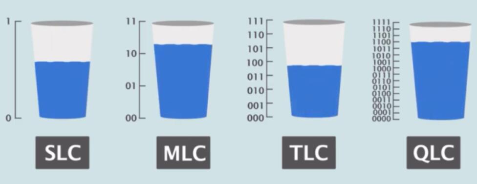 第一步是在每個存儲單元中存儲兩位而不是一個位。這就是所謂的多級單元(MLC)閃存。從那時起就已經制造出在三級單元(TLC) 中存儲三位并且在四級單元(QLC)中存儲四位的閃存。內存的原始類型現在稱為單級單元(SLC)。
