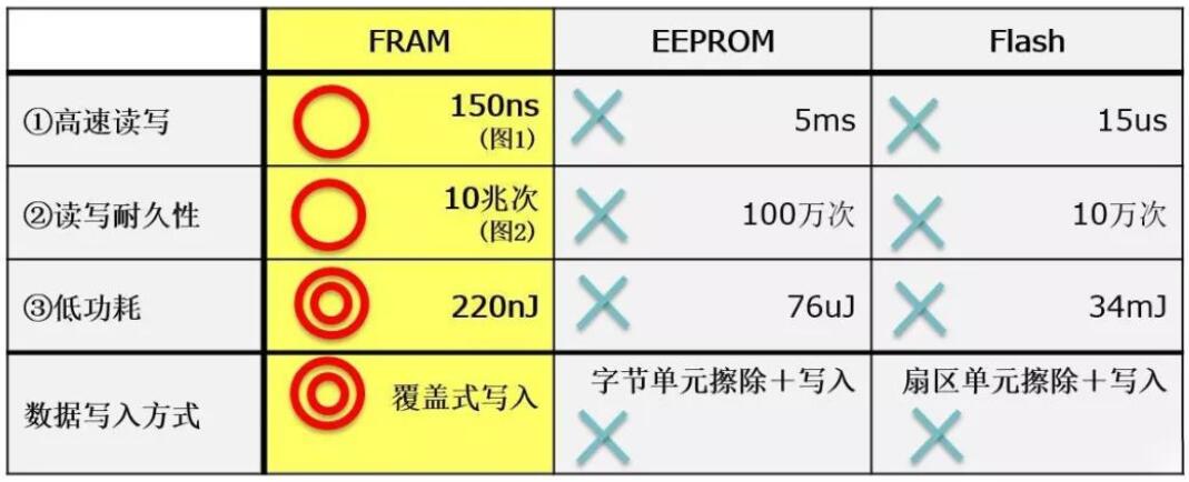 FRAM具有ROM和RAM的特點,在高速讀寫入、高讀寫耐久性、低功耗和防竄改方面具有優勢。