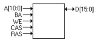 地址和數據總線仍然存在,但是地址總線只有11位(用于提供要打開的行,然后提供列地址)。BA引腳指定了存儲區(由于在我們的示例中只有2個存儲區,因此我們僅需要一個引腳)。WE,CAS和RAS一起用作命令引腳,因此我們可以向SDRAM發送8個不同的命令(命令包括“打開行”,“讀取”,“寫入”和“關閉行”)。使用了其他一些引腳(但未在圖片上顯示),例如時鐘,片選,字節使能...